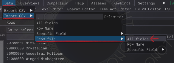 다운받은 모드가 csv파일 병합이 필요할 때 Import CSV로 들여오면