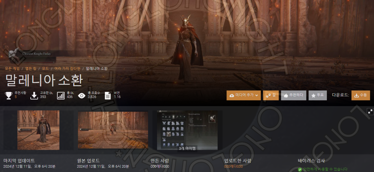 이대로 .bin형식의 파일을 덮어씌워 사용하는 모드는 이 '말레니아 소환 모드' 하나만 쭉 사용하실 거라면,