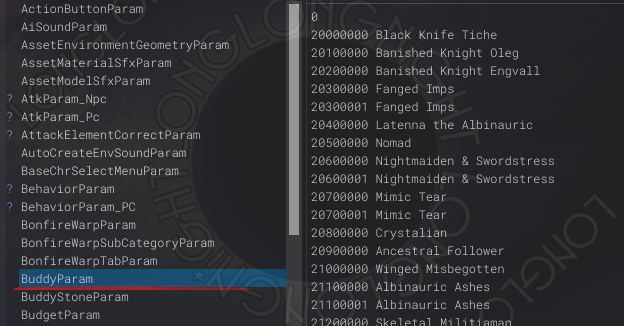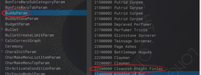 제일 첫 번째 파일인 BuddyParam이라는 이름을, 아까 실행했던 Smithbox의 Param Editor에서 찾아보겠습니다.