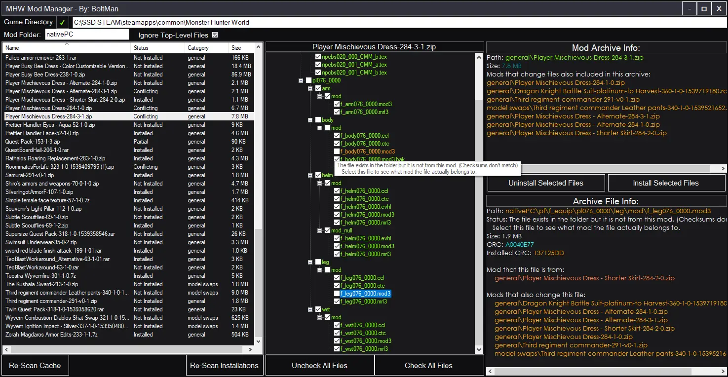 그리고 월드/아이스본에도 MHW Mod Manager라는 편리한 프로그램이 있습니다.