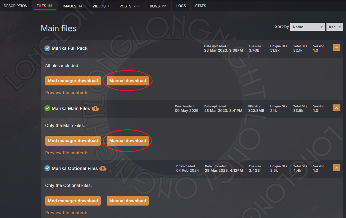 Files의 매뉴얼 다운로드를 클릭한 뒤 풀 팩, 또는 메인 파일을 받습니다.